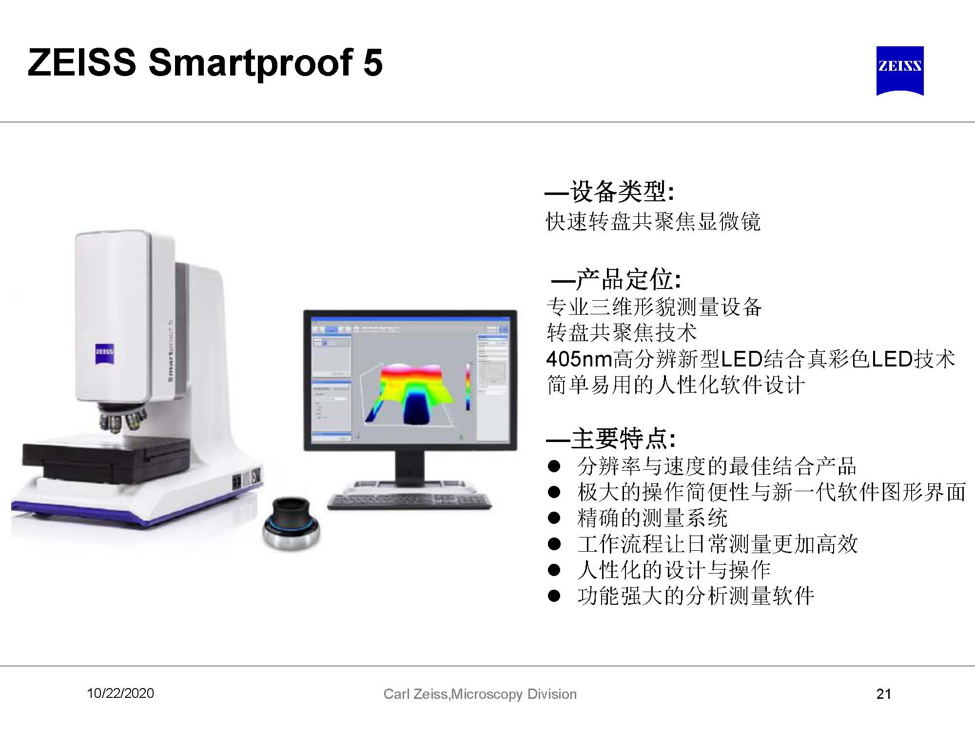蔡司的多功能 Smartproof 5 快速转盘共聚焦显微镜是用于表面分析的集成系统:快速,准确,可重复。可用于各种工业应用——比如粗糙度分析和地形表征——质量保证和质量控制部门,生产部门及 R&D 实验室日常分析中需要解决的问题。